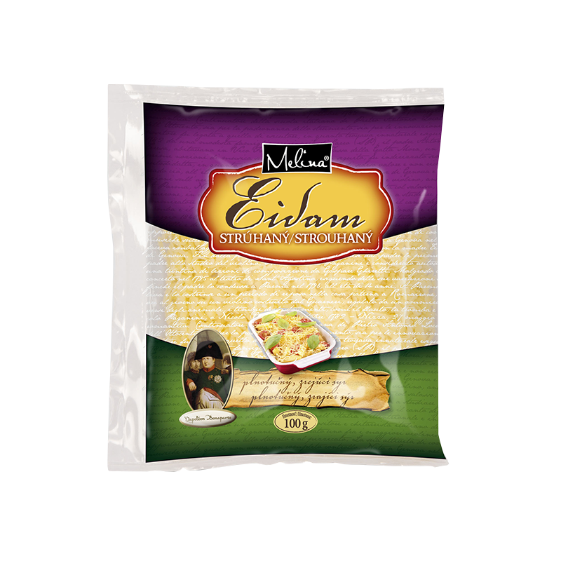 Medzi azda najznámejší a predovšetkým najobľúbenejší syr určite patrí Eidam, ktorý sa vyrábal už v 14. storočí. Tento syr získal svoj názov od prístavného mestečka Edam na severe Holandska, pričom výroba bola rozvinutá hlavne v provincii Noord Holland, čo je 25 km severne od Amsterdamu. Syr v pomerne rýchlej dobe expandoval do ďalších krajín Európy a následne aj do celého sveta. Dnes sa pripravuje do rôznych podôb a v obchodoch ho môžeme nájsť buď v tvare väčšej či menšej kocky, narezaný na plátky či v podobe taveného eidamu. Spoločnosť Melina obľúbený eidam pripravuje aj vo forme nastrúhaného zrejúceho syra, ktorý pod Tatrami vyrába z kvalitného pasterizovaného mlieka. Eidam od Meliny s obsahom tuku v sušine 40 % sa môže použiť na varenie do viacerých syrových omáčok, v talianskej kuchyni, pri pečení koláčov, ako aj do zemiakových jedál či rôznych mäsových pokrmov. Strúhaný syr nájdete v predajniach v priesvitnom obale s ochrannou atmosférou, ktorý výrobku zabezpečuje požadovanú trvanlivosť.